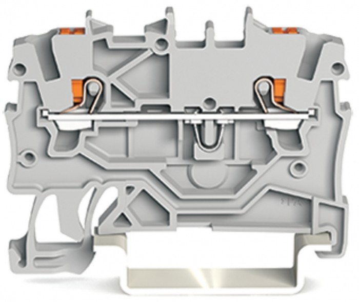 Złączka przelotowa 2-przewodowa; z przyciskami; 1 mm2; z otworem pomiarowym; opis z boku i na środku; na szynę ts 35 x 15 i 35 x 7,5; push-in cage clamp®; 1,00 mm2; szary