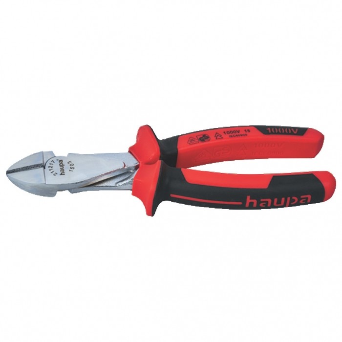 Mocny obcinak boczny DIN ISO 5745 VDE ze stali chromowo-wanadowej, szczypce hartowane indukcyjnie, do drutów pianinowych, chromowany, nasadzana osłona, przekładnia dźwigniowa, perfekcyjne wykorzystanie siły cięcia