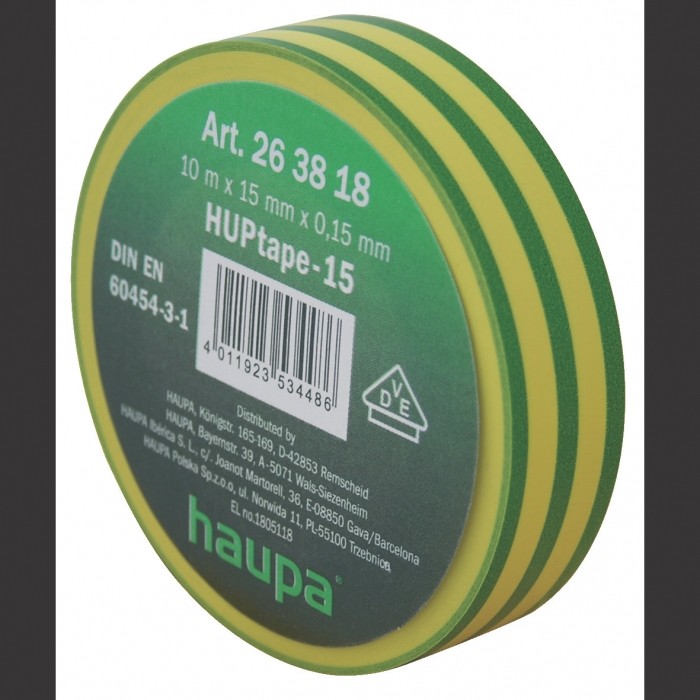 HUPtape-15 Elektro- taśma izolacyjna do profesjonalnego użycia Materiał: PVC, sprawdzona VDE jakość, według DIN EN 60454-3-1, ognioodporny, powstrzymujący płomienie, wytrzymałość na temperatury od -30oC do 105oC, wodoodporny na wodę, warunki atmosferyczne i UV, wysoka elastyczność i przylepność, do wszechstronnego zastosowania, nie zrywa się i nie starzeje się, przeznaczona do izolowania, do tworzenia wiązek kablowych oraz znamionowania, dostępna w 10 kolorach.