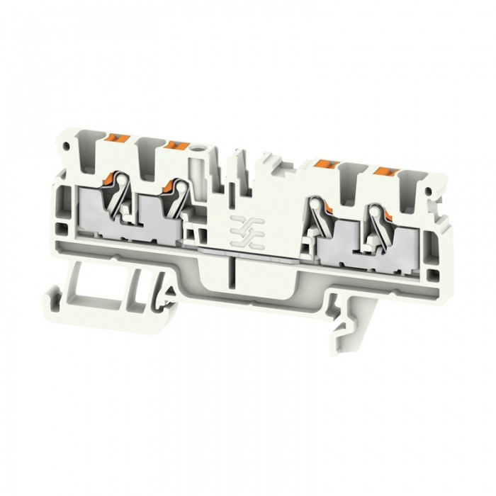 Blok zacisku przelotowego, PUSH IN, Jasnoszary, 2.5 mm2, 24 A, 800 V, liczba przyłączeń: 4 Blok zaciskowy służący do podłączenia lub łączenia przewodników ze stale zabezpieczonym kontaktem. Hartowana stal wytrzyma przeciążenia, miedź powlekana cyną zapewnia najlepsze przewodnictwo.