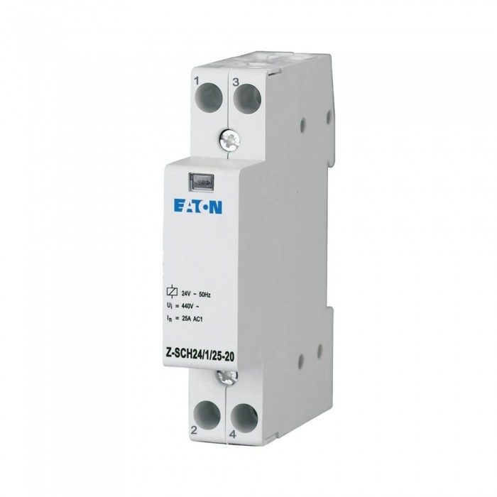 Stycznik instalacyjny, 24 V AC/50 Hz, 2 N/O, 25 A Stycznik instalacyjny, znamionowe napięcie obwodu sterowania 24 V AC, znamionowy prąd roboczy przy AC1 25 A, funkcja: N/O, detale zgodne z IEC 61095, EN 61095, VDE 0660, IEC 60947-4-1_x, EN 60947-4-1, VDE, standardowy wymiar frontu: 45 mm, szerokość montażowa 1 MU, montaż na szynie górnej