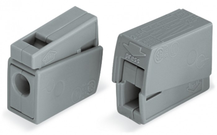 Złączka oświetleniowa; przyciski: od strony oprawy ośw.; od strony oprawy: do wszyst. rodz.przew.; od strony instalacji: do przew. jednodr.; seria 224; maks. 2,5 mm2; temperatura otoczenia maks. 60°c; 2,50 mm2; szary