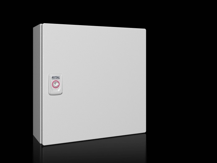 Obudowa (E-Box) Obudowa z drzwiami: Konstrukcja z blachy stalowej, nadwozie złożone z jednego kawałka i spawane, z kanałem ochronnym otwieranym na wszystkie drzwi, tylny panel z oczkami do montażu ściennego, drzwi zawieszone po prawej stronie, z piankowym uszczelnieniem z uszczelką z włókna (PE), z połączeniem przewodu PE w obudowie oraz przez uchwyt w kształcie litery U w drzwiach, dla szybkiego i łatwego uziemienia, Zamek krzywkowy z wkładką dwukrotną 3 mm do DIN 43668, z płytą montażową. Kod QR: Kod QR wydrukowany na korpusie, okładce i tabliczce z oceną dla wyraźnej identyfikacji i łatwego dostępu do odpowiednich informacji i dokumentacji o produkcie oraz dla wyraźnej wykrywalności poszczególnych części. Akcesoria: szyna do cylindera, uchwyt ścienny, prowadnica, uchwyt Mini-comfort, modułowe wejście kabli. Materiał: Obudowa, drzwi: blacha stalowa Płyta montażowa: blacha stalowa, cynkowana Wykończenie powierzchni obudowy i drzwi: Potrójna obróbka powierzchniowa dla maksymalnej ochrony przed korozją i odpornością na oleje mineralne, smary, emulsje obróbki i rozpuszczalniki: Powłoka nanoceramiczna, elektroforetyczna warstwa gruntująca Powłoka proszkowa na zewnątrz teksturowanym RAL 7035. Kategoria ochrony według IEC 60 529: Kategoria ochrony IP 66 do UL 508A: Wymiary typu 4 (W x H x D): 300x300x120 mm