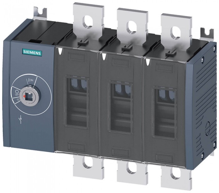 Rozłącznik izolacyjny 630A, wielkość 4, 3-bieg. napęd przedni z lewej strony jednostka podstawowa rozłącznik izolacyjny 630A, wielkość 4, 3-bieg. napęd przedni z lewej strony jednostka podstawowa bez rękojeści przyłącze płaskie Rozłącznik izolacyjny 3KD do 1600 A jako wydajny wyłącznik główny, WYŁĄCZNIK AWARYJNY lub wyłącznik naprawczy. Rozłączniki izolacyjne firmy Siemens oferują niezawodną ochronę osób i zapewniają wysoką dostępność instalacji w przemyśle, infrastrukturze i budynkach. Są to urządzenia uniwersalne, przystosowane do pracy w elektrowniach wiatrowych i słonecznych. Wyłączniki główne, przełączniki WYŁĄCZENIA AWARYJNEGO lub serwisowe 3KD są dostępne w różnych wersjach z różnymi rodzajami przyłączy i napędów. Dostępnesą również warianty do zastosowań z prądem stałym. Stałe bezpieczeństwo dla użytkowników i systemów.