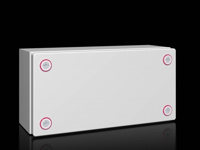 Obudowa (skrzynka zaciskowa bez płytki odlewowej) Obudowa z osłoną: Stabilna konstrukcja z blachy stalowej, nadwozie złożone z jednego kawałka i spawane, z otworem ochronnym na osłonę osłony z okiem na osłonę montażową na ścianie, osłona z piankowym uszczelnieniem U, z połączeniem przewodu PE w obudowie oraz przez uchwyt w kształcie litery U w pokrywie, dla szybkiego i łatwego uziemienia, Z zamkiem Mini Cam. Kod QR: Kod QR wydrukowany na korpusie, okładce i tabliczce z oceną dla wyraźnej identyfikacji i łatwego dostępu do odpowiednich informacji i dokumentacji o produkcie oraz dla wyraźnej wykrywalności poszczególnych części. Akcesoria: zawias pokrywy, uchwyt na osłonę, płytka montażowa, szyna na cylinder, uchwyt montażowy na ścianie, pazur montażowy na drugi poziom. Materiał: Obudowa, pokrywa: blacha stalowa Wykończenie powierzchni: Potrójna obróbka powierzchni dla optymalnej ochrony przed korozją i odpornością na oleje mineralne, smary, emulsje obróbki i rozpuszczalniki: powłoka nanoceramiczna, elektroforetyczna warstwa gruntowa, powłoka proszkowa na zewnątrz teksturowanym RAL 7035. Kategoria ochrony według IEC 60 529: Kategoria ochrony IP 66 do UL 508A: Wymiary typu 4 (Szerokość x Wysokość x Wysokość): 300x150x120 mm