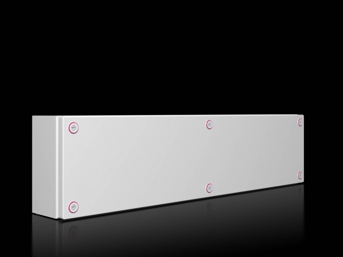 Obudowa (skrzynka zaciskowa bez płytki odlewowej) Obudowa z osłoną: Stabilna konstrukcja z blachy stalowej, nadwozie złożone z jednego kawałka i spawane, z otworem ochronnym na osłonę osłony z okiem na osłonę montażową na ścianie, osłona z piankowym uszczelnieniem U, z połączeniem przewodu PE w obudowie oraz przez uchwyt w kształcie litery U w pokrywie, dla szybkiego i łatwego uziemienia, Z zamkiem Mini Cam. Kod QR: Kod QR wydrukowany na korpusie, okładce i tabliczce z oceną dla wyraźnej identyfikacji i łatwego dostępu do odpowiednich informacji i dokumentacji o produkcie oraz dla wyraźnej wykrywalności poszczególnych części. Akcesoria: zawias pokrywy, uchwyt na osłonę, płytka montażowa, szyna na cylinder, uchwyt montażowy na ścianie, pazur montażowy na drugi poziom. Materiał: Obudowa, pokrywa: blacha stalowa Wykończenie powierzchni: Potrójna obróbka powierzchni dla optymalnej ochrony przed korozją i odpornością na oleje mineralne, smary, emulsje obróbki i rozpuszczalniki: powłoka nanoceramiczna, elektroforetyczna warstwa gruntowa, powłoka proszkowa na zewnątrz teksturowanym RAL 7035. Kategoria ochrony według IEC 60 529: Kategoria ochrony IP 66 do UL 508A: Wymiary typu 4 (Szerokość x Wysokość x Wysokość): 800x200x120 mm