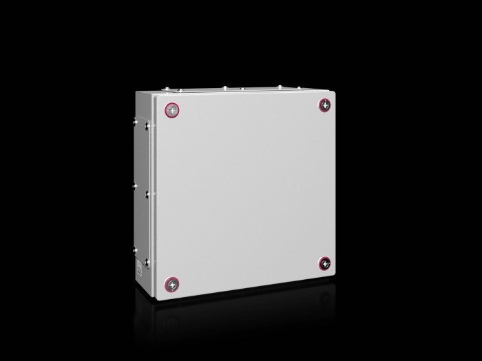 Obudowa (skrzynka zaciskowa z płytką przepustową) Obudowa z osłoną: Stabilna konstrukcja z blachy stalowej, nadwozie złożone z jednego kawałka i spawane, z kanałem ochronnym w oku otwieranym na całą osłonę, tylny panel z oczkami do montażu ściennego, osłona z piankowym uszczelnieniem U, z połączeniem przewodu PE w obudowie oraz przez uchwyt w kształcie litery U w pokrywie, dla szybkiego i łatwego uziemienia, Z zamkiem Mini Cam. Podstawa obudowy z blachą z blachy stalowej. Kod QR: Kod QR wydrukowany na korpusie, okładce i tabliczce z oceną dla wyraźnej identyfikacji i łatwego dostępu do odpowiednich informacji i dokumentacji o produkcie oraz dla wyraźnej wykrywalności poszczególnych części. Akcesoria: zawias pokrywy, uchwyt osłony, płytka montażowa, szyna top hat, uchwyt ścienny, metalowe płytki odlewowe, wejście kabla, modułowe, pazur montażowy na drugi poziom. Materiał: Obudowa, pokrywa: blacha stalowa Wykończenie powierzchni: Potrójna obróbka powierzchni dla optymalnej ochrony przed korozją i odpornością na oleje mineralne, smary, emulsje obróbki i rozpuszczalniki: powłoka nanoceramiczna, elektroforetyczna warstwa gruntowa, powłoka proszkowa na zewnątrz teksturowanym RAL 7035. Kategoria ochrony według IEC 60 529: Kategoria ochrony IP 55 do: UL508A: Typ 12 Wymiary (Sześć x Wysokość x Kąt): 300x300x120 mm