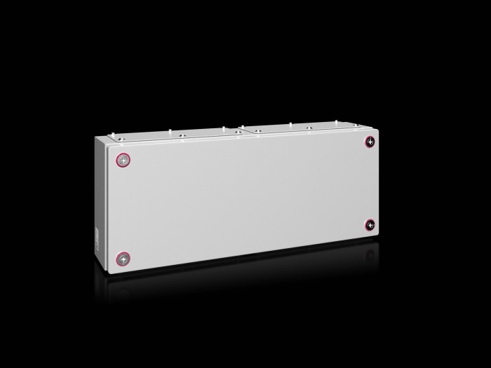 Obudowa (skrzynka zaciskowa z płytką przepustową) Obudowa z osłoną: Stabilna konstrukcja z blachy stalowej, nadwozie złożone z jednego kawałka i spawane, z kanałem ochronnym w oku otwieranym na całą osłonę, tylny panel z oczkami do montażu ściennego, osłona z piankowym uszczelnieniem U, z połączeniem przewodu PE w obudowie oraz przez uchwyt w kształcie litery U w pokrywie, dla szybkiego i łatwego uziemienia, Z zamkiem Mini Cam. Podstawa obudowy z blachą z blachy stalowej. Kod QR: Kod QR wydrukowany na korpusie, okładce i tabliczce z oceną dla wyraźnej identyfikacji i łatwego dostępu do odpowiednich informacji i dokumentacji o produkcie oraz dla wyraźnej wykrywalności poszczególnych części. Akcesoria: zawias pokrywy, uchwyt osłony, płytka montażowa, szyna top hat, uchwyt ścienny, metalowe płytki odlewowe, wejście kabla, modułowe, pazur montażowy na drugi poziom. Materiał: Obudowa, pokrywa: blacha stalowa Wykończenie powierzchni: Potrójna obróbka powierzchni dla optymalnej ochrony przed korozją i odpornością na oleje mineralne, smary, emulsje obróbki i rozpuszczalniki: powłoka nanoceramiczna, elektroforetyczna warstwa gruntowa, powłoka proszkowa na zewnątrz teksturowanym RAL 7035. Kategoria ochrony według IEC 60 529: Kategoria ochrony IP 55 do: UL508A: Typ 12 Wymiary (Szerokość x Wysokość x Wysokość): 500x200x120 mm