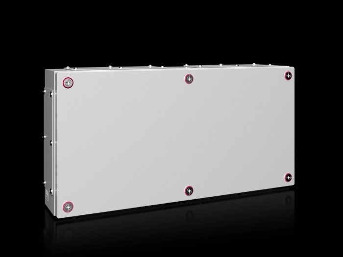 Obudowa (skrzynka zaciskowa z płytką przepustową) Obudowa z osłoną: Stabilna konstrukcja z blachy stalowej, nadwozie złożone z jednego kawałka i spawane, z kanałem ochronnym w oku otwieranym na całą osłonę, tylny panel z oczkami do montażu ściennego, osłona z piankowym uszczelnieniem U, z połączeniem przewodu PE w obudowie oraz przez uchwyt w kształcie litery U w pokrywie, dla szybkiego i łatwego uziemienia, Z zamkiem Mini Cam. Podstawa obudowy z blachą z blachy stalowej. Kod QR: Kod QR wydrukowany na korpusie, okładce i tabliczce z oceną dla wyraźnej identyfikacji i łatwego dostępu do odpowiednich informacji i dokumentacji o produkcie oraz dla wyraźnej wykrywalności poszczególnych części. Akcesoria: zawias pokrywy, uchwyt osłony, płytka montażowa, szyna top hat, uchwyt ścienny, metalowe płytki odlewowe, wejście kabla, modułowe, pazur montażowy na drugi poziom. Materiał: Obudowa, pokrywa: blacha stalowa Wykończenie powierzchni: Potrójna obróbka powierzchni dla optymalnej ochrony przed korozją i odpornością na oleje mineralne, smary, emulsje obróbki i rozpuszczalniki: powłoka nanoceramiczna, elektroforetyczna warstwa gruntowa, powłoka proszkowa na zewnątrz teksturowanym RAL 7035. Kategoria ochrony według IEC 60 529: Kategoria ochrony IP 55 do: UL508A: Typ 12 Wymiary (Szerokość x Wysokość x Wysokość): 600x300x120 mm