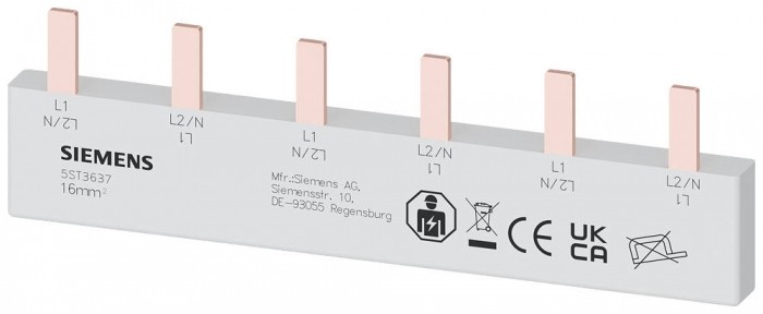 Szyna łączeniowa grzebieniowa 16 mm2, 2-faz., 3x (1-faz.+N), 105 mm szyna zbiorcza kołkowa, 16 mm2 przyłącze: 3x 2-faz. zabezpieczona przed dotknięciem szyna zbiorcza kołkowa SENTRON 5ST3 jako komponenty dodatkowe do urządzeń różnicowoprądowych i wyłączników nadmiarowo-prądowych. Te dodatkowe komponenty można uniwersalnie instalować. Są łatwe i wygodne w montażu i łączeniu. Dzięki standardowej ochronie przed dotykiem zapewnione jest bezpieczeństwo podczas instalacji. Optymalna technika gwarantująca bezpieczeństwo - tylko od firmy Siemens.