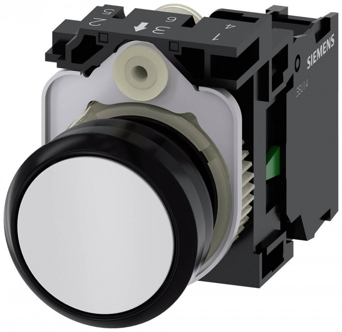 Przycisk, 22 mm, okrągły, tworzywo sztuczne, biały, Przycisk, płaski, impulsowy, z uchwytem 1NO, przyłącze śrubowe Przycisk SIRIUS ACT do przełączania i sterowania odbiornikami elektrycznymi. SIRIUS ACT to jedyna w swoim rodzaju oferta urządzeń sterowniczych oraz sygnalizacyjnych mających dopuszczenia produktowe na całym świecie, dostępna w trzech nowoczesnych liniach wzorniczych wykonanych z wytrzymałego metalu oraz wysokogatunkowego tworzywa sztucznego.Innowacyjna koncepcja łączenia ułatwia montaż, dzięki czemu można go wykonać jedną ręką bez użycia żadnych specjalnych narzędzi. Do montażu wystarczają też otwory bez rowków, ponieważ 100-procentowe zabezpieczenie przed przekręceniem jest już zintegrowane w produkcie.Dzięki stałemu wysokiemu stopniowi ochrony te wytrzymałe urządzenia nadają się do użycia w przemyśle oraz na zewnątrz pomieszczeń zamkniętych. Urządzenia można czyścić myjkami wysokociśnieniowymi. Ani kurz, ani oleje, ani agresywne zasady nie są w sanie zakłócić eksploatacji.Oprócz zastosowania standardowego okablowania urządzenia można podłączać do sterownika także przez PROFINET, AS-Interface lub IO-Link. Tym samym można zredukować nakłady na okablowanie, zminimalizować źródła błędów oraz uzyskać większą elastyczność.Graficzny konfigurator online stanowi wygodne wsparcie na etapie dokonywania wyboru oraz składania zamówienia pojedynczych urządzeń, obudów oraz opisów. Dostępna jest także obszerna dokumentacja (np. podręcznik, dane 3D, schemat połączeń). Dostępne wersje: wiele kolorów, podświetlane/niepodświetlane, z/bez napisu, uruchamianie bez samopowrotu/impulsowe, różne wysokości przycisków i pierścieni przednich. Uwaga: Kompletne urządzenie, Dostawa wraz z uchwytem i modułami. SIRIUS ACT - moc w działaniu podczas sterowania i sygnalizacji. Łatwy montaż, po prostu mocny, po prostu perfekcyjny.