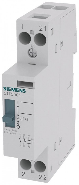 Stycznik instalacyjny automatyka 0/1 z 1 zestykiem zwiernym i 1 rozwiernym, zestyk do AC 230V stycznik instalacyjny z automatyką 0/1 z 1 zestykiem zwiernym i 1 zestykiem rozwiernym zestyk do AC 230 V, 400 V 20 A zasterowanie 24 V AC/DC Stycznik instalacyjny SENTRON 5TT5 do zastosowań w budownictwie mieszkaniowym i użytkowym oraz w przemyśle. Aparatura rozdzielcza SENTRON oferuje wygodne i proste wykonywanie montażu i podłączeń oraz niezawodne bezpieczeństwo podczas instalacji dzięki standardowo stosowanej ochronie przed dotykiem. Łączniki zdalnie sterowane, przekaźniki pośredniczące, styczniki instalacyjne i zegary sterujące oferują liczne możliwości realizacji różnych funkcji przełączania. Do aparatury rozdzielczej SENTRON dostępna jestszeroka gama łatwego w montażu wyposażenia dodatkowego. optymalna technika gwarantująca bezpieczeństwo - tylko od firmy Siemens.