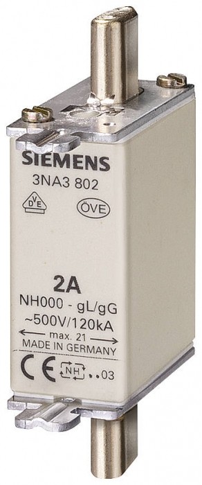 Wkładka bezpiecznika niskonapięciowego wielkiej mocy, NH000, In: 35 A, gG, Un AC: 500 V, Un DC: 250 V wkładka bezpiecznika niskonapięciowego wielkiej mocy, NH000, In: 35 A, gG, Un AC: 500 V, Un DC: 250 V, wskaźnik czołowy, nakładki uchwytów przewodzące napięcie Wkładka topikowa NH SENTRON 3NA3 do selektywnej ochrony przewodów i instalacji. System bezpieczników NH daje skuteczną ochronę osób, sprzętu i systemu poprzez bezpieczne odłączenie w przypadku przeciążenia lub zwarcia. Wkładki bezpiecznikowe NH są dostępne w zakresie od 2 A do 1250A i w wielkościach 000, 00, 0, 1, 2, 3, 4 i 4a. Warianty z funkcją komunikacyjną i pomiarową w wielkości 2 od 80 A do 315 A. Urządzenia ochronne przełączające SENTRON - Bezpieczny wybór. Teraz jeszcze bardziej inteligentnie.