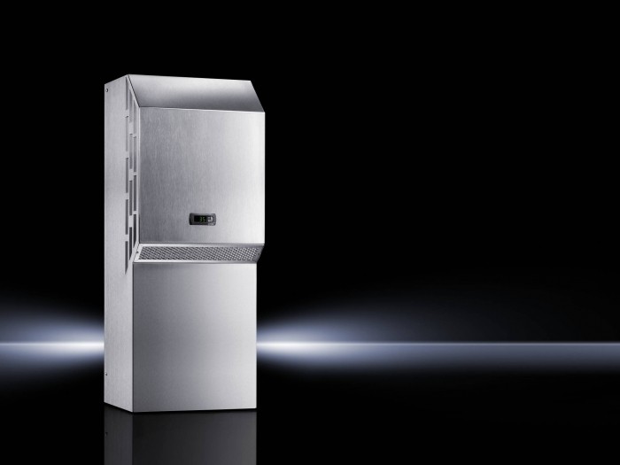 Jednostka chłodzenia montowana na ścianie Rittal TopTherm NEMA 4 X Konstrukcja Użyteczna moc chłodzenia do DIN 3168 L35 L35 1000/1060 W Napięcie nominalne 400 V, 50 Hz - 460 V, 60 Hz,3~ Zużycie energii Pel do DIN 3168 L35 L35 580/550 W Wymiary Sześć x H x D [mm] 400 x 950 x 260 Czynnik chłodniczy R 134 a Zakres temperatur 20°C do 55°C Kontrola temperatury i monitorowanie za pomocą kontrolera komfortu z dwoma pływającymi usterkami styki sygnałowe i połączenie przełącznika drzwiowego Ustawienie fabryczne 35°C Podłączenie przez podłączalną taśmę końcową Kategoria ochrony NEMA 4X Masa 40 kg Kolor RAL 7035