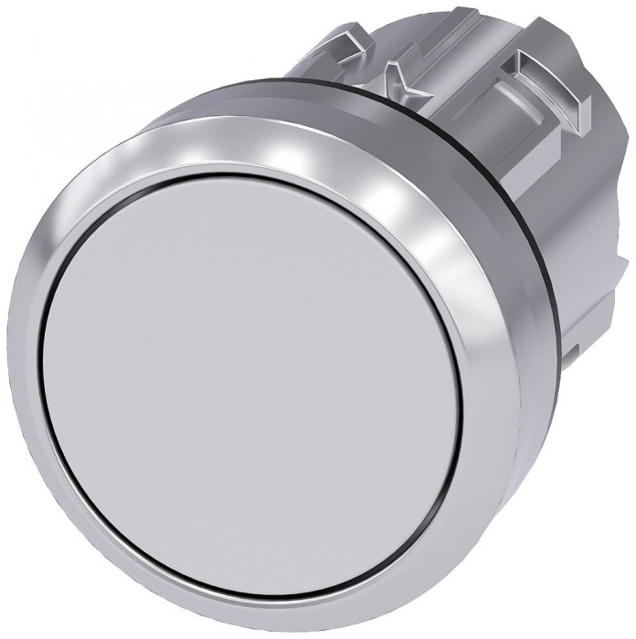 Przycisk, 22 mm, okrągły, metal, błyszczący, biały, Przycisk, płaski impulsowy Przycisk SIRIUS ACT do przełączania i sterowania odbiornikami elektrycznymi. SIRIUS ACT to jedyna w swoim rodzaju oferta urządzeń sterowniczych oraz sygnalizacyjnych mających dopuszczenia produktowe na całym świecie, dostępna w trzech nowoczesnych liniach wzorniczych wykonanych z wytrzymałego metalu oraz wysokogatunkowego tworzywa sztucznego.Innowacyjna koncepcja łączenia ułatwia montaż, dzięki czemu można go wykonać jedną ręką bez użycia żadnych specjalnych narzędzi. Do montażu wystarczają też otwory bez rowków, ponieważ 100-procentowe zabezpieczenie przed przekręceniem jest już zintegrowane w produkcie.Dzięki stałemu wysokiemu stopniowi ochrony te wytrzymałe urządzenia nadają się do użycia w przemyśle oraz na zewnątrz pomieszczeń zamkniętych. Urządzenia można czyścić myjkami wysokociśnieniowymi. Ani kurz, ani oleje, ani agresywne zasady nie są w sanie zakłócić eksploatacji.Oprócz zastosowania standardowego okablowania urządzenia można podłączać do sterownika także przez PROFINET, AS-Interface lub IO-Link. Tym samym można zredukować nakłady na okablowanie, zminimalizować źródła błędów oraz uzyskać większą elastyczność.Graficzny konfigurator online stanowi wygodne wsparcie na etapie dokonywania wyboru oraz składania zamówienia pojedynczych urządzeń, obudów oraz opisów. Dostępna jest także obszerna dokumentacja (np. podręcznik, dane 3D, schemat połączeń). Dostępne wersje: wiele kolorów, podświetlane/niepodświetlane, z/bez napisu, uruchamianie bez samopowrotu/impulsowe, różne wysokości przycisków i pierścieni przednich. Uwaga: Samo urządzenie, Uchwyt oraz moduły należy zamówić oddzielnie. SIRIUS ACT - moc w działaniu podczas sterowania i sygnalizacji. Łatwy montaż, po prostu mocny, po prostu perfekcyjny.