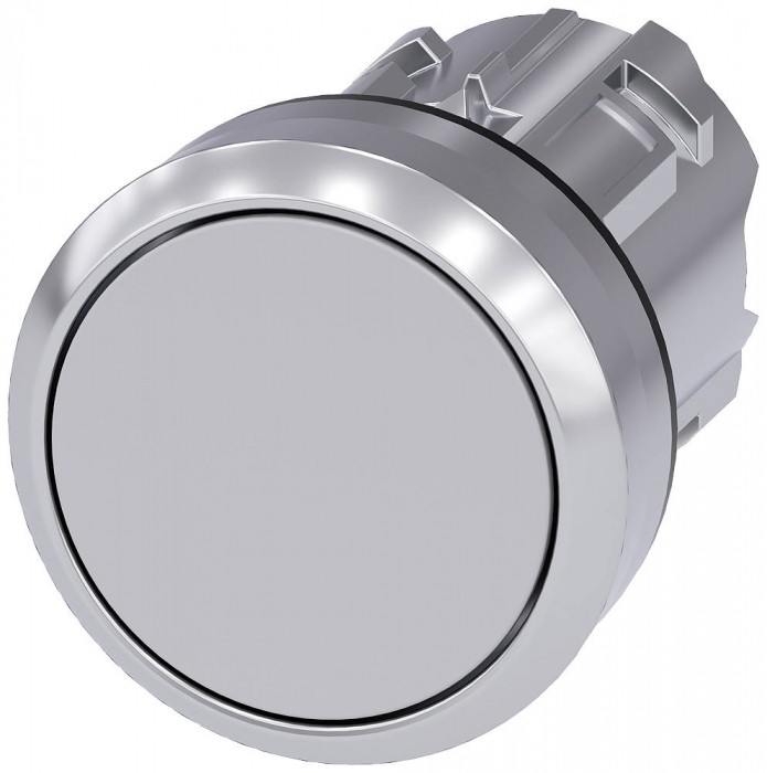 Przycisk, 22 mm, okrągły, metal, błyszczący, szary, Przycisk, płaski impulsowy Przycisk SIRIUS ACT do przełączania i sterowania odbiornikami elektrycznymi. SIRIUS ACT to jedyna w swoim rodzaju oferta urządzeń sterowniczych oraz sygnalizacyjnych mających dopuszczenia produktowe na całym świecie, dostępna w trzech nowoczesnych liniach wzorniczych wykonanych z wytrzymałego metalu oraz wysokogatunkowego tworzywa sztucznego.Innowacyjna koncepcja łączenia ułatwia montaż, dzięki czemu można go wykonać jedną ręką bez użycia żadnych specjalnych narzędzi. Do montażu wystarczają też otwory bez rowków, ponieważ 100-procentowe zabezpieczenie przed przekręceniem jest już zintegrowane w produkcie.Dzięki stałemu wysokiemu stopniowi ochrony te wytrzymałe urządzenia nadają się do użycia w przemyśle oraz na zewnątrz pomieszczeń zamkniętych. Urządzenia można czyścić myjkami wysokociśnieniowymi. Ani kurz, ani oleje, ani agresywne zasady nie są w sanie zakłócić eksploatacji.Oprócz zastosowania standardowego okablowania urządzenia można podłączać do sterownika także przez PROFINET, AS-Interface lub IO-Link. Tym samym można zredukować nakłady na okablowanie, zminimalizować źródła błędów oraz uzyskać większą elastyczność.Graficzny konfigurator online stanowi wygodne wsparcie na etapie dokonywania wyboru oraz składania zamówienia pojedynczych urządzeń, obudów oraz opisów. Dostępna jest także obszerna dokumentacja (np. podręcznik, dane 3D, schemat połączeń). Dostępne wersje: wiele kolorów, podświetlane/niepodświetlane, z/bez napisu, uruchamianie bez samopowrotu/impulsowe, różne wysokości przycisków i pierścieni przednich. Uwaga: Samo urządzenie, Uchwyt oraz moduły należy zamówić oddzielnie. SIRIUS ACT - moc w działaniu podczas sterowania i sygnalizacji. Łatwy montaż, po prostu mocny, po prostu perfekcyjny.