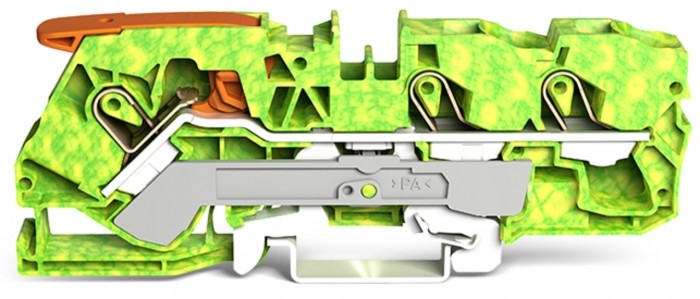 Złączka pe 3-przewodowa; z dźwignią i push-in cage clamp®; 10 mm2; z otworem pomiarowym; opis z boku i na środku; na szynę ts 35 x 15 i 35 x 7,5; push-in cage clamp®; 10,00 mm2; żółto-zielony