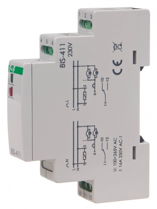 Przekaźnik bistabilny BIS-411, montaż na szynie DIN