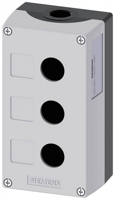 Obudowa dla przyrządy sterujące, 22 mm, okrągły, Materiał obudowy: metal, górna część obudowy szara, 3 punkty sterujące, bez wyposażenia, zagłębienie na tabliczki, mocowanie do podłoża, u góry i na dole po 1xM20 Obudowa SIRIUS ACT do montażu urządzeń sterujących i sygnalizacyjnych 22,5 mm w przestrzennie oddzielonym układzie jednostek sterujących i szaf sterowniczych. SIRIUS ACT to jedyna w swoim rodzaju oferta urządzeń sterowniczych oraz sygnalizacyjnych mających dopuszczenia produktowe na całym świecie, dostępna w trzech nowoczesnych liniach wzorniczych wykonanych z wytrzymałego metalu oraz wysokogatunkowego tworzywa sztucznego.Innowacyjna koncepcja łączenia ułatwia montaż, dzięki czemu można go wykonać jedną ręką bez użycia żadnych specjalnych narzędzi. Do montażu wystarczają też otwory bez rowków, ponieważ 100-procentowe zabezpieczenie przed przekręceniem jest już zintegrowane w produkcie.Dzięki stałemu wysokiemu stopniowi ochrony te wytrzymałe urządzenia nadają się do użycia w przemyśle oraz na zewnątrz pomieszczeń zamkniętych. Urządzenia można czyścić myjkami wysokociśnieniowymi. Ani kurz, ani oleje, ani agresywne zasady nie są w sanie zakłócić eksploatacji.Oprócz zastosowania standardowego okablowania urządzenia można podłączać do sterownika także przez PROFINET, AS-Interface lub IO-Link. Tym samym można zredukować nakłady na okablowanie, zminimalizować źródła błędów oraz uzyskać większą elastyczność.Graficzny konfigurator online stanowi wygodne wsparcie na etapie dokonywania wyboru oraz składania zamówienia pojedynczych urządzeń, obudów oraz opisów. Dostępna jest także obszerna dokumentacja (np. podręcznik, dane 3D, schemat połączeń). Dostępne wersje: żółty/szary, tworzywo sztuczne/metal, 1-6 punktów sterujących, pusta obudowa/wyposażenie wstępne, opcjonalnie z połączeniem z interfejsem AS-i. SIRIUS ACT - moc w działaniu podczas sterowania i sygnalizacji. Łatwy montaż, po prostu mocny, po prostu perfekcyjny.