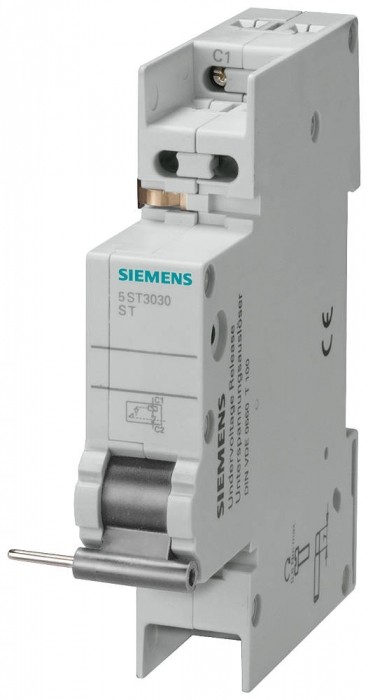 Wyzwalacz napięciowy 12V AC/DC, do wyłączników nadmiarowo-prądowych wyzwalacz napięciowy 12V AC/DC do wyłączników nadmiarowo-prądowych 5SL4, 5SY, 5SP, RCBO 5SU1, RCCB 5SV (w przypadku 5SU1 złącze 5ST3805-1 wymagane) Wyzwalacz prądu roboczego SENTRON 5ST3 jako komponenty dodatkowe do urządzeń różnicowoprądowych i wyłączników nadmiarowo-prądowych. Te dodatkowe komponenty można uniwersalnie instalować. Są łatwe i wygodne w montażu i łączeniu. Dzięki standardowej ochronie przed dotykiem zapewnione jest bezpieczeństwo podczas instalacji. Optymalna technika gwarantująca bezpieczeństwo - tylko od firmy Siemens.