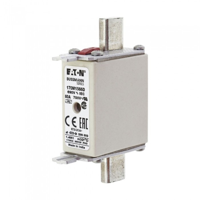 Wkładka bezpiecznikowa, Wysoka prędkość, 80 A, AC 690 V, DIN 000, aR, DIN, IEC, sygnalizator podwójny, ruchome uchwyty