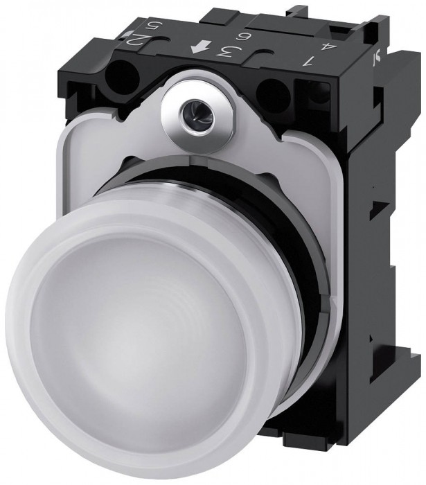 Sygnalizator świetlny, 22 mm, okrągły, metal, błyszczący, biały, Soczewka, matowy, z uchwytem, Moduł LED ze zintegrowaną diodą LED AC 230 V, przyłącze śrubowe Lampka sygnalizacyjna SIRIUS ACT do sygnalizowania stanów przełączenia lub błędów w instalacjach o doskonałej jasności dzięki energooszczędnej technologii LED. SIRIUS ACT to jedyna w swoim rodzaju oferta urządzeń sterowniczych oraz sygnalizacyjnych mających dopuszczenia produktowe na całym świecie, dostępna w trzech nowoczesnych liniach wzorniczych wykonanych z wytrzymałego metalu oraz wysokogatunkowego tworzywa sztucznego.Innowacyjna koncepcja łączenia ułatwia montaż, dzięki czemu można go wykonać jednąręką bez użycia żadnych specjalnych narzędzi. Do montażu wystarczają też otwory bez rowków, ponieważ 100-procentowe zabezpieczenie przed przekręceniem jest już zintegrowane w produkcie.Dzięki stałemu wysokiemu stopniowi ochrony te wytrzymałe urządzenia nadają się do użycia w przemyśle oraz na zewnątrz pomieszczeń zamkniętych. Urządzenia można czyścić myjkami wysokociśnieniowymi. Ani kurz, ani oleje, ani agresywne zasady nie są w sanie zakłócić eksploatacji.Oprócz zastosowania standardowego okablowania urządzenia można podłączać do sterownika także przez PROFINET, AS-Interface lub IO-Link. Tym samym można zredukować nakłady na okablowanie, zminimalizować źródła błędów oraz uzyskać większą elastyczność.Graficzny konfigurator online stanowi wygodne wsparcie na etapie dokonywania wyboru oraz składania zamówienia pojedynczych urządzeń, obudów oraz opisów. Dostępna jest także obszerna dokumentacja (np. podręcznik, dane 3D, schemat połączeń). Dostępne wersje: wiele kolorów, różne warianty napięcia. Uwaga: Kompletne urządzenie, Dostawa wraz z uchwytem i modułami. SIRIUS ACT - moc w działaniu podczas sterowania i sygnalizacji. Łatwy montaż, po prostu mocny, po prostu perfekcyjny.
