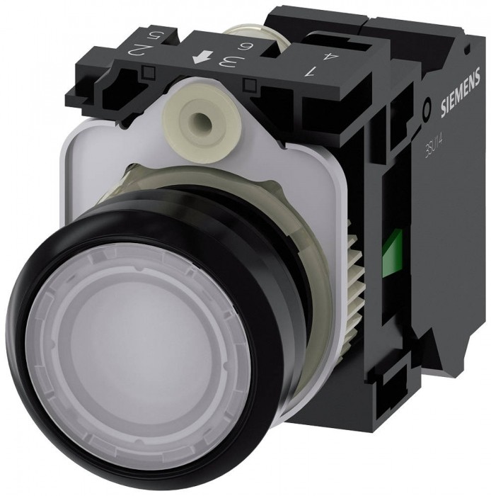Przycisk z lampką kontrolną, 22 mm, okrągły, tworzywo sztuczne, biały, Przycisk, płaski, impulsowy, z uchwytem, 1NO, Moduł LED ze zintegrowaną diodą LED AC/DC 24V, przyłącze sprężynowe Przycisk z lampką kontrolną SIRIUS ACT do przełączania i sterowania odbiornikami elektrycznymi. SIRIUS ACT to jedyna w swoim rodzaju oferta urządzeń sterowniczych oraz sygnalizacyjnych mających dopuszczenia produktowe na całym świecie, dostępna w trzech nowoczesnych liniach wzorniczych wykonanych z wytrzymałego metalu oraz wysokogatunkowego tworzywa sztucznego.Innowacyjna koncepcja łączenia ułatwia montaż, dzięki czemu można go wykonać jedną ręką bez użycia żadnych specjalnych narzędzi. Do montażu wystarczają też otwory bez rowków, ponieważ 100-procentowe zabezpieczenie przed przekręceniem jest już zintegrowane w produkcie.Dzięki stałemu wysokiemu stopniowi ochrony te wytrzymałe urządzenia nadają się do użycia w przemyśle oraz na zewnątrz pomieszczeń zamkniętych. Urządzenia można czyścić myjkami wysokociśnieniowymi. Ani kurz, ani oleje, ani agresywne zasady nie są w sanie zakłócić eksploatacji.Oprócz zastosowania standardowego okablowania urządzenia można podłączać do sterownika także przez PROFINET, AS-Interface lub IO-Link. Tym samym można zredukować nakłady na okablowanie, zminimalizować źródła błędów oraz uzyskać większą elastyczność.Graficzny konfigurator online stanowi wygodne wsparcie na etapie dokonywania wyboru oraz składania zamówienia pojedynczych urządzeń, obudów oraz opisów. Dostępna jest także obszerna dokumentacja (np. podręcznik, dane 3D, schemat połączeń). Dostępne wersje: wiele kolorów, podświetlane/niepodświetlane, z/bez napisu, uruchamianie bez samopowrotu/impulsowe, różne wysokościprzycisków i pierścieni przednich. Uwaga: Kompletne urządzenie, Dostawa wraz z uchwytem i modułami. SIRIUS ACT - moc w działaniu podczas sterowania i sygnalizacji. Łatwy montaż, po prostu mocny, po prostu perfekcyjny.