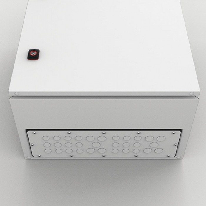 Łatwo wybicie wymagało określonej liczby otworów do wejścia kabla do stalowej płyty właziakowej, co pozwala na zarządzanie linkami. Ta płytka z gruczonem z wybijaniami, AFK, AFK21R5 wymiary 342x128x3mm, wykonana z miękkiej stali, jasnoszara w kolorze.