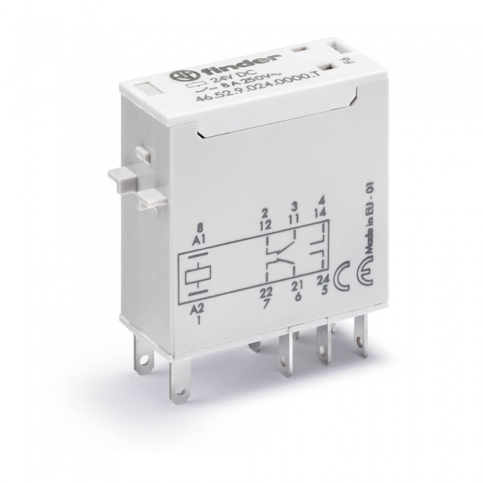 Miniaturowe przekaźniki przemysłowe (A): 8 A. Nr. styków: 2 Konfiguracja styków: CO Materiał styku: AgNi Typ połączenia elektrycznego: Złącze wtyczkowe Wersja cewkowa: DC W DC: 24 V. Wolne od polaryzacji Monostabilne Z stykami prowadzonymi wymuszonie: brak Rodzaj styku przełącznika: pojedynczy Z gniazdem: brak Z oznaczeniem LED: tak. Styk materiałowy: inne stopy miedzi: Liczba styków jako normalnie zamknięty: 0 Liczba styków jako normalnie otwarty: 0 Liczba styków jako styk wymienny: 2 Materiał wkładki: Termoplast Ochrona środowiskowa: RT II. Akcesoria: Adapter do montażu kołnierza; gniazdo S.97