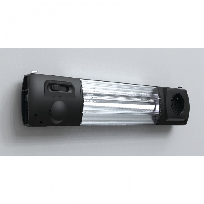 Lampa LED z funkcją szybkiego montażu pozwala na dopasowanie do wzoru otworów 25 mm profili obudów. Ta lampa LED EL z gniazdem G, 1200lm 100-240V, EL1200DS GB ma wymiary 76x364x48mm i jest wykonana z plastiku w kolorze czarnym.