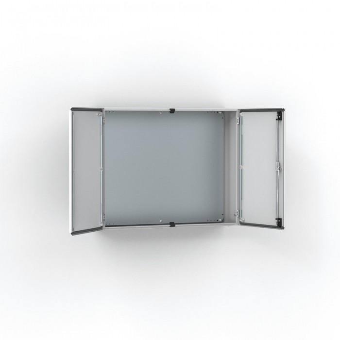 Idealna instalacja w zamkniętych przestrzeniach, gdzie pojedyncze drzwi zajmują zbyt dużo miejsca przed obudową. Ta obudowa z podwójnymi drzwiami, MAD, MAD1201230R5 wymiary 1200x1200x300 mm, wykonana ze stali, kolor Lt Gray.