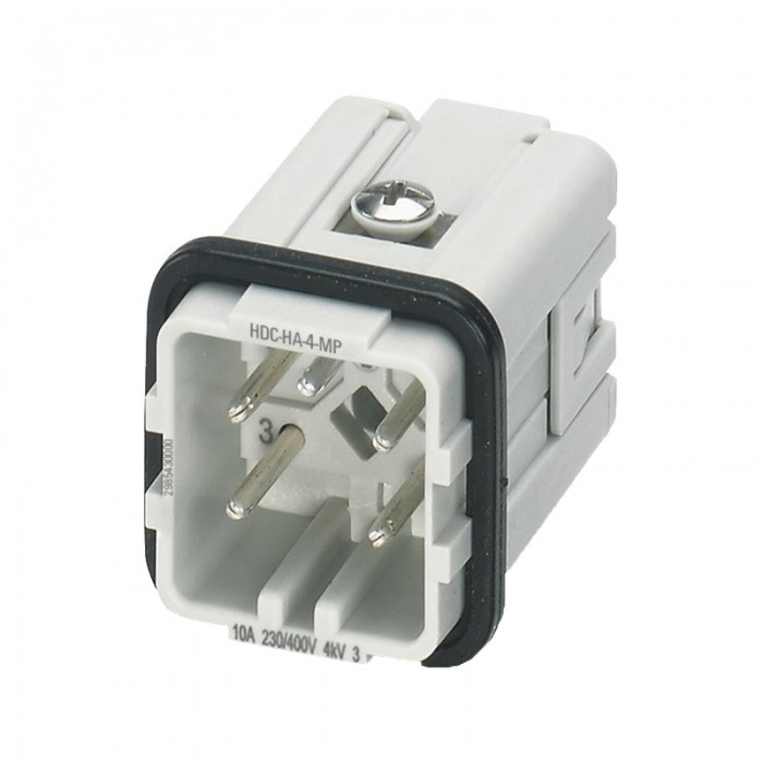 Wkład styku (złącza przemysłowe), Złącze męskie, 400 V, 10 A, Liczba biegunów: 4, PUSH IN, Rozmiar instalacji: 1 Wkładka dla wtykowych łączników przemysłowych, skłądająca się z elementu stycznego i izolacji.