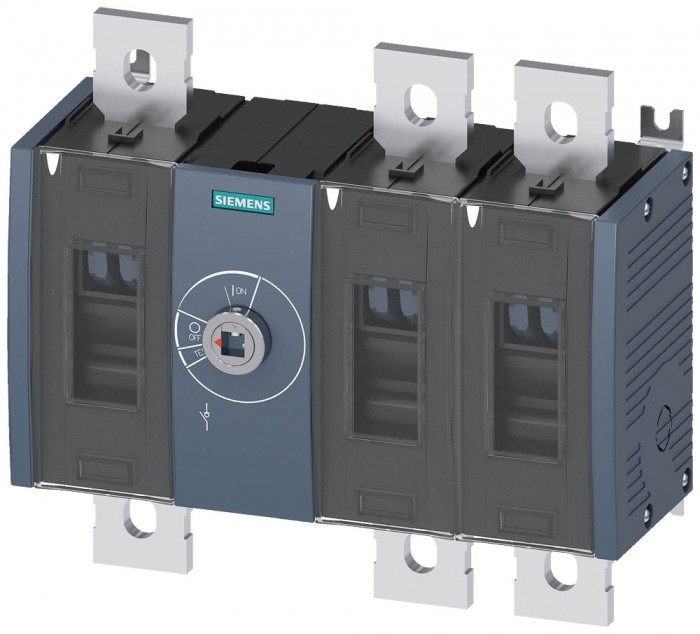 Rozłącznik izolacyjny 630A, wielkość 4, 3-bieg. napęd przedni na środku jednostka podstawowa rozłącznik izolacyjny 630A, wielkość 4, 3-bieg. napęd przedni na środku jednostka podstawowa bez rękojeści przyłącze płaskie Rozłącznik izolacyjny 3KD do 1600 A jako wydajny wyłącznik główny, WYŁĄCZNIK AWARYJNY lub wyłącznik naprawczy. Rozłączniki izolacyjne firmy Siemens oferują niezawodną ochronę osób i zapewniają wysoką dostępność instalacji w przemyśle, infrastrukturze i budynkach. Są to urządzenia uniwersalne, przystosowane do pracy w elektrowniach wiatrowych i słonecznych. Wyłączniki główne, przełączniki WYŁĄCZENIA AWARYJNEGO lub serwisowe 3KD są dostępne w różnych wersjach z różnymi rodzajami przyłączy i napędów. Dostępnesą również warianty do zastosowań z prądem stałym. Stałe bezpieczeństwo dla użytkowników i systemów.