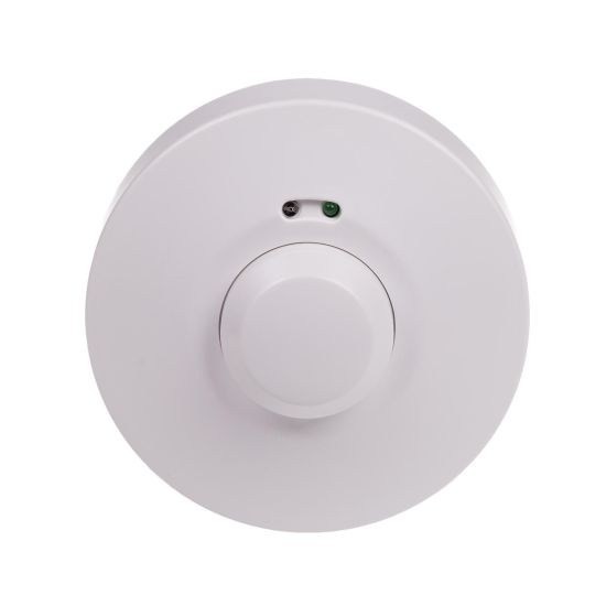 Czujnik ruchu mikrofalowy (czujnik radarowy, czujnik aktywny) Montaż sufitowy IP40 Czujnik ruchu służy do automatycznego, czasowego załączania oświetlenia w przypadku pojawienia się osoby lub innego obiektu, w takich miejscach, jak: korytarze, podwórza, podejścia i podjazdy, garaże, itp.