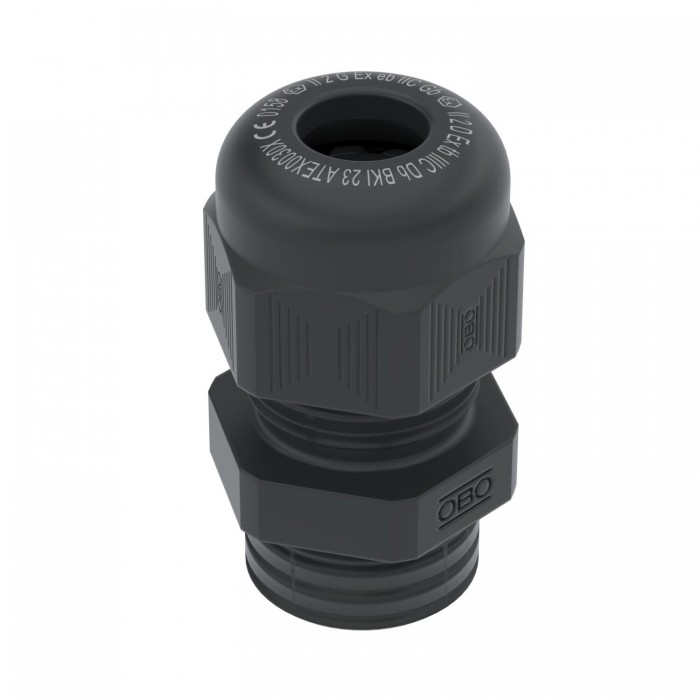 Dławik kablowy - EX M16 Poliamid czarny Dławik kablowy z atestem UE dotyczącym wzoru konstrukcyjnego dla urządzeń i systemów ochronnych przeznaczonych do zastosowania w obszarach zagrożonych wybuchem. Richtlinie 2014/34/EU. EG-Baumusterprüfbescheinigungsnummer: BKI23ATEX0030 X. Z gwintem metrycznym zgodnie z IEC 423. Dichtring aus Chloroprene-/Nitrilkautschuk, angespritzte Dichtlippen, daher kein Anschlussgewinde-Dichtring erforderlich. Schutzart IP 68 bei 3 bar.