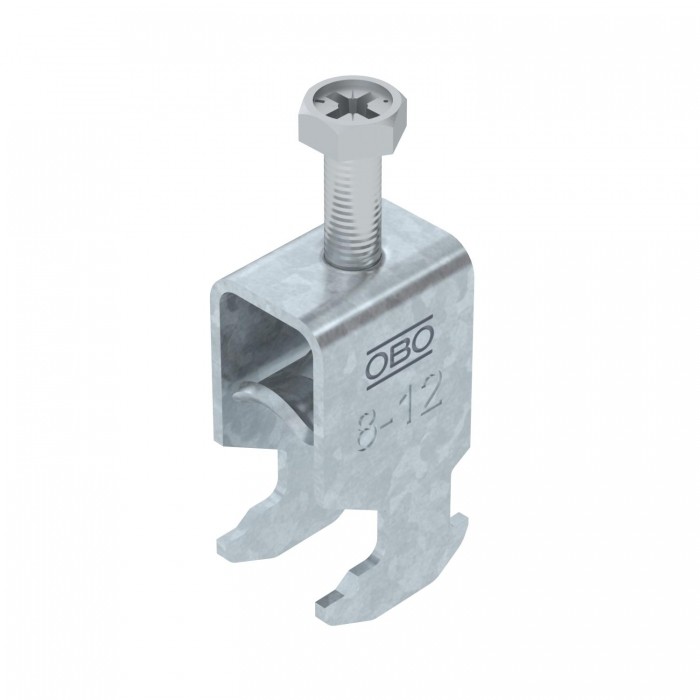 Obejma kabłąkowa 2056 08-12mm stal cynkowane ogniowo-zanurzeniowo Obejma kabłąkowa ze stopką z łbem młotkowym, metalowa wanienka dociskowa, z zaokrąglonymi krawędziami do ochrony kabli. Do pionowego i poziomego montażu pojedynczego kabla na szynie o profilu C. Do szczeliny o szerokości 16 - 17 mm. Z gwintem jednoskokowym na wanience dociskowej, łeb sześciokątny uniwersalny SW10, z rowkiem i łbem krzyżakowym Nadaje się do montażu wewnątrz i na zewnątrz Wanienkę dociskową należy zamówić oddzielnie.
