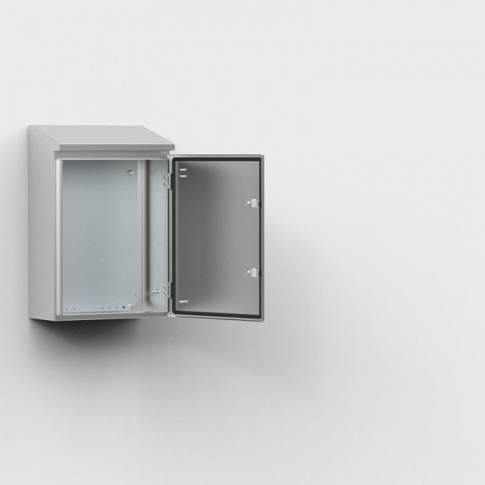Ten stalowy jednodrzwiowy model z wbudowaną okapą przeciwdeszczową, AFS, AFS04062-316, wymiary 400x600x210mm, wykonany jest ze stali nierdzewnej 316L, kolor niemalowany, wykończenie szczotkowane.